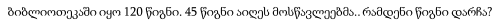 ბიბლიოთეკაში იყო 120 წიგნი. 45 წიგნი აიღეს მოსწავლეებმა.. რამდენი წიგნი დარჩა?