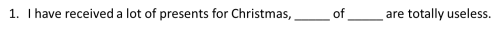 I have received a lot of presents for Christmas, _____ of _____ are totally useless.