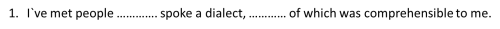 I`ve met people …………. spoke a dialect, ………… of which was comprehensible to me.