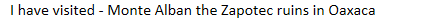 I have visited - Monte Alban the Zapotec ruins in Oaxaca