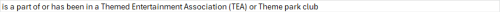 O-Is a part of or has been in a Themed Entertainment Association (TEA) or Theme Park club