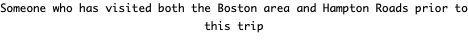 Someone who has visited both the Boston area and Hampton Roads prior to this trip