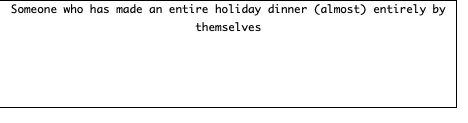 Someone who has made an entire holiday dinner (almost) entirely by themselves
