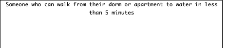 Someone who can walk from their dorm or apartment to water in less than 5 minutes