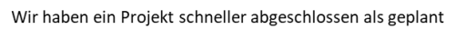 14. Wir haben ein Projekt schneller abgeschlossen als geplant