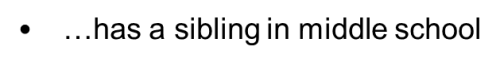 23. has a sibling in middle school