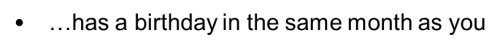 10. has a birthday in the same month as you