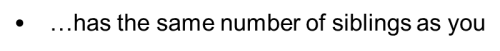 11. has the same number of siblings as you