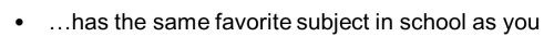 6. has the same favorite subject in school as you