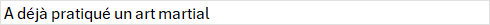 Sait faire du crochet A écouté la série The Office au complet Parle 4 langues ou plus A déjà sauté en parachute A fait un roadtrip en moto / vélo Est un ou une swiftie Fête son anniversaire en août A plus de 5 plantes vivantes à la maison Aime faire de la photographie N'a jamais utilisé TikTok A une famille nombreuse (enfants / fratrie) Adore les films d'horreur Collectionne quelque chose Sait faire le moonwalk A fait partie d'une équipe sportive Ne boit pas de café S'est déjà cassé un os Peut toucher son nez avec sa langue A déjà travaillé dans un champ Est fan de hockey N'aime pas le chocolat Joue d'un instrument de musique A visité au moins 4 continents Possède encore un lecteur VHS Fait du vélo en hiver A déjà été en Gaspésie A couru un marathon Sait jongler Est fan de science fiction A déjà pratiqué un art martial Est quasi pro de la rénovation Peut résoudre un Rubik's cube Est allergique aux chats A une chaîne YouTube A été au sommet de la tour olympique Sait faire un gâteau de A à Z Sait faire du crochet A écouté la série The Office au complet Parle 4 langues ou plus A déjà sauté en parachute A fait un roadtrip en moto / vélo Est un ou une swiftie Fête son anniversaire en août A plus de 5 plantes vivantes à la maison Aime faire de la photographie N'a jamais utilisé TikTok A une famille nombreuse (enfants / fratrie) Adore les films d'horreur Collectionne quelque chose Sait faire le moonwalk A fait partie d'une équipe sportive Ne boit pas de café S'est déjà cassé un os Peut toucher son nez avec sa langue A déjà travaillé dans un champ Est fan de hockey N'aime pas le chocolat Joue d'un instrument de musique A visité au moins 4 continents Possède encore un lecteur VHS Fait du vélo en hiver A déjà été en Gaspésie A couru un marathon Sait jongler Est fan de science fiction A déjà pratiqué un art martial Est quasi pro de la rénovation Peut résoudre un Rubik's cube Est allergique aux chats A une chaîne YouTube A été au sommet de la tour olympique Sait faire un gâteau de A à Z