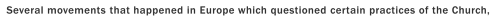 15. Several movements that happened in Europe which questioned certain practices of the Church.