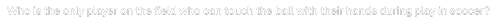 6. Who is the only player on the field who can touch the ball with their hands during play in soccer?