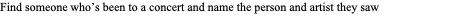 12. I-Find someone who’s been to a concert and name the person and artist they saw