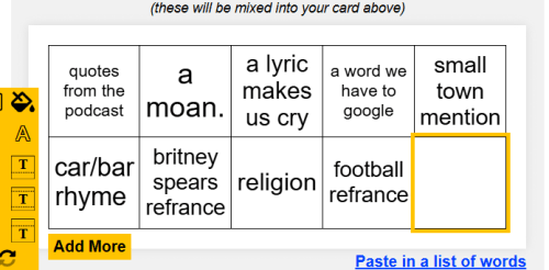 (Print) Use this randomly generated list as your call list when playing the game. There is no need to say the BINGO column name. Place some kind of mark (like an X, a checkmark, a dot, tally mark, etc) on each cell as you announce it, to keep track. You can also cut out each item, place them in a bag and pull words from the bag.