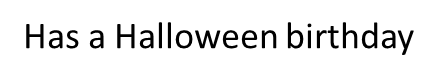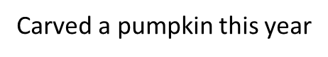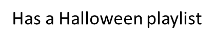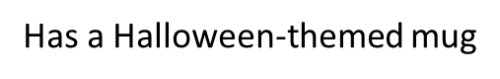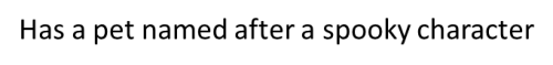 Has aHalloweenbirthday Carved apumpkinthis year Knowsa magictrick Owns askeletondecoration Favoritetreat iscandycorn Has aHalloweenplaylist Has ablackcat Has aHalloween-themedmug Decoratestheirhome/desk Can nameall theAddamsFamilymembers Attending/throwinga Halloween partythis year Has a petnamed aftera spookycharacter Has aHalloween-themednotebook orpenHas seena spidertoday Hasattendeda costumecontest Haswatched ascary moviethis week Likesghosttours Has madea DIYCostume Read ahorrornovel thisyear   Knows aghoststory!Has aHalloweenrecipe Seen areal bat Lovesscarymovies Has beento a cornmaze Has aHalloweenbirthday Carved apumpkinthis year Knowsa magictrick Owns askeletondecoration Favoritetreat iscandycorn Has aHalloweenplaylist Has ablackcat Has aHalloween-themedmug Decoratestheirhome/desk Can nameall theAddamsFamilymembers Attending/throwinga Halloween partythis year Has a petnamed aftera spookycharacter Has aHalloween-themednotebook orpenHas seena spidertoday Hasattendeda costumecontest Haswatched ascary moviethis week Likesghosttours Has madea DIYCostume Read ahorrornovel thisyear  Knows aghoststory!Has aHalloweenrecipe Seen areal bat Lovesscarymovies Has beento a cornmaze