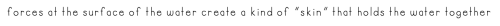 the force at the surface of the water that creates a kind of “skin” that holds water molecules together