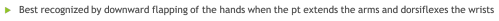 liver flap, Best recognized by downward flapping of the hands when the pt extends the arms and dorsiflexes the wrists, indicates presence of ammonia on the brain/hepatic encephalopathy