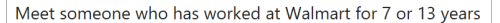 13. Meet someone who has worked at Walmart for 7 or 13 years