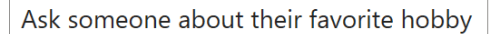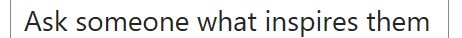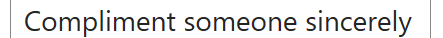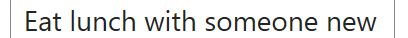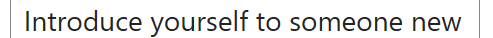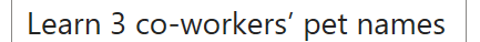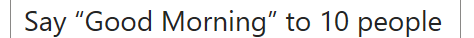 Say “GoodMorning”to 10peopleJoin agroupactivityTake adancebreakPlay ateamgameAsksomeoneabout theirfavoritehobbyShare achildhoodmemoryTake 3deepbreathsSharea funfactLearn 3co-workers’pet namesIntroduceyourself tosomeonenewRecommenda podcast orbookHigh-five 3peopleMeetsomeone whohas worked atWalmart for 7or 13 yearsTeachsomeonesomethingnewEat lunchwithsomeonenewAsksomeonewhat inspiresthemDo ayogaposeTake amindfulwalkDiscovera sharedinterestSpot ananimal largerthan a squirrelbut smallerthan a bearComplimentsomeonesincerelyShare ahealthgoalTake agroupphotoGive athank younote to apeerSay “GoodMorning”to 10peopleJoin agroupactivityTake adancebreakPlay ateamgameAsksomeoneabout theirfavoritehobbyShare achildhoodmemoryTake 3deepbreathsSharea funfactLearn 3co-workers’pet namesIntroduceyourself tosomeonenewRecommenda podcast orbookHigh-five 3peopleMeetsomeone whohas worked atWalmart for 7or 13 yearsTeachsomeonesomethingnewEat lunchwithsomeonenewAsksomeonewhat inspiresthemDo ayogaposeTake amindfulwalkDiscovera sharedinterestSpot ananimal largerthan a squirrelbut smallerthan a bearComplimentsomeonesincerelyShare ahealthgoalTake agroupphotoGive athank younote to apeer