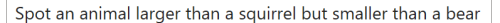 20. Spot an animal larger than a squirrel but smaller than a bear