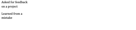 Had toadaptquickly tochangeSet apersonalgoal andachieved itEncouragedsomeoneelserecentlyFree!MaintainedbalancedespitestressAskedfor helprecentlyTried a newstrategy forsuccessAsked forfeedbackon aprojectOvercamea challengethissemesterStayedpositiveduring asetbackShareda helpfulresourceSupporteda peerthroughdifficultyTook amentalhealthbreakPracticesgratitudeLearnedfrom amistake StayedcalmunderpressureHad toadaptquickly tochangeSet apersonalgoal andachieved itEncouragedsomeoneelserecentlyFree!MaintainedbalancedespitestressAskedfor helprecentlyTried a newstrategy forsuccessAsked forfeedbackon aprojectOvercamea challengethissemesterStayedpositiveduring asetbackShareda helpfulresourceSupporteda peerthroughdifficultyTook amentalhealthbreakPracticesgratitudeLearnedfrom amistake Stayedcalmunderpressure