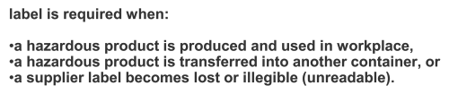 What label is required when a hazardous product is produced and used in workplace