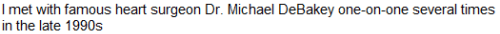 I met with famous heart surgeon Dr. Michael DeBakey one-on-one several times in the late 1990s