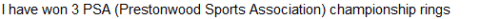 I have won 3 PSA (Prestonwood Sports Association) championship rings