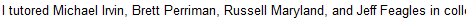 I tutored Michael Irvin, Brett Perriman, Russell Maryland, and Jeff Feagles in college