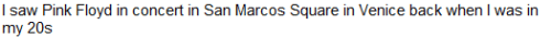I saw Pink Floyd in concert in San Marcos Square in Venice back when I was in my 20s