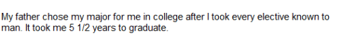 My father chose my major for me in college after I took every elective known to man. It took me 5 1/2 years to graduate.