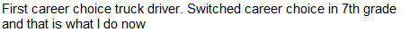 First career choice truck driver. Switched career choice in 7th grade and that is what I do now