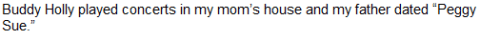 Buddy Holly played concerts in my mom’s house and my father dated “Peggy Sue.”