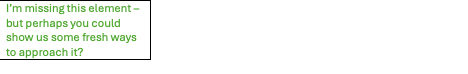 I’m missing this element –but perhaps you could show us some fresh ways to approach it?