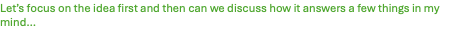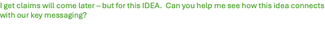 I get claims will come later – but for this idea can you help me see how this idea connects with our key messaging?