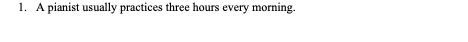A pianistusuallypractices threehours everymorning.A chefsometimesplans anew menu.A pianistsometimesperforms atthe concerthall.A bakersometimesworks at themarket in thecity center.A chefusuallybakesdesserts inthe oven.A firefighteralways drivesthe fire truckinemergencies.A nurseneverforgetsher tools.A bakeralwayswears anapron.A firefighteroften checksthe fireequipment.A nursesometimeshelps patientswalk in thehospitalgarden.A vet oftengives shotsto sickanimals.A teacherusuallychecksstudents’homework.A teachersometimesplays Englishgames inclass.A tour guideoften takestourists totemples.A tour guidealwayscarries amicrophone.A vet usuallyhelps dogsand catsevery day.A pianistusuallypractices threehours everymorning.A chefsometimesplans anew menu.A pianistsometimesperforms atthe concerthall.A bakersometimesworks at themarket in thecity center.A chefusuallybakesdesserts inthe oven.A firefighteralways drivesthe fire truckinemergencies.A nurseneverforgetsher tools.A bakeralwayswears anapron.A firefighteroften checksthe fireequipment.A nursesometimeshelps patientswalk in thehospitalgarden.A vet oftengives shotsto sickanimals.A teacherusuallychecksstudents’homework.A teachersometimesplays Englishgames inclass.A tour guideoften takestourists totemples.A tour guidealwayscarries amicrophone.A vet usuallyhelps dogsand catsevery day.