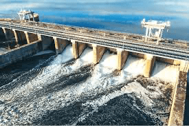 a machine that uses a moving stream of a fluid to spin a wheel with blades, which then produces power