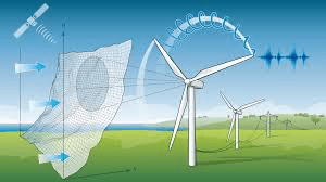 the process of capturing the kinetic energy of moving air and converting it into electricity