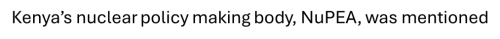 G-Kenya’s nuclear policy making body, NuPEA, was mentioned