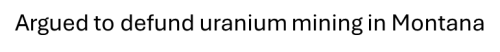 O-Argued to defund uranium mining in Montana