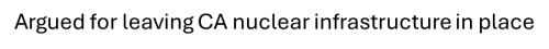 B-Argued for leaving CA nuclear infrastructure in place