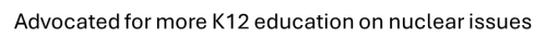 B-Advocated for more K12 education on nuclear issues