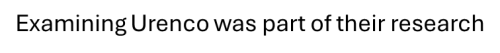I-Examining Urenco was part of their research