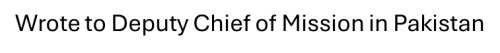 O-Wrote to Deputy Chief of Mission in Pakistan