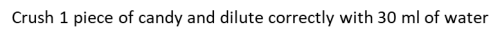 14. Crush 1 piece of candy and dilute correctly with 30 ml of water