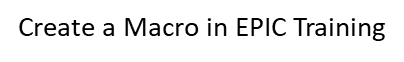 3. Create a Macro in EPIC Training