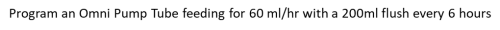 4. Program an Omni Pump Tube feeding for 60 ml/hr with a 200ml flush every 6 hours