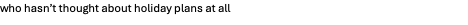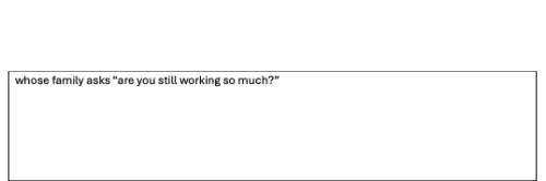 alreadyon theirseconddrinkWho hastheir pet astheir phonescreenwho lovesdecoratingtheir placejoinedlastyearworkedhere 3+yearswho knowsexactly whattheir kidswant forholidayspreferscoffeeover teawhosnacksall dayholdinga drinkwearingsomethingsparklyhas morethan 20browsertabs openwearingred orgreenwho mutesfamilygroupchatswearingan uglyChristmassweaterwhoalready hasholidayplanswhose familyasks “areyou stillworking somuch?”who isvisitingfamily forthe holidayshas strongopinionsabout foodhas pet hairon theirclothes(right now)enjoysstayinghome duringholidayswhohaskidshas a pet astheir Slackprofilepicturewho hasn’tthoughtaboutholiday plansat allwho iscountingdown totime offWho hastheir kids astheir phonescreenalreadyon theirseconddrinkWho hastheir pet astheir phonescreenwho lovesdecoratingtheir placejoinedlastyearworkedhere 3+yearswho knowsexactly whattheir kidswant forholidayspreferscoffeeover teawhosnacksall dayholdinga drinkwearingsomethingsparklyhas morethan 20browsertabs openwearingred orgreenwho mutesfamilygroupchatswearingan uglyChristmassweaterwhoalready hasholidayplanswhose familyasks “areyou stillworking somuch?”who isvisitingfamily forthe holidayshas strongopinionsabout foodhas pet hairon theirclothes(right now)enjoysstayinghome duringholidayswhohaskidshas a pet astheir Slackprofilepicturewho hasn’tthoughtaboutholiday plansat allwho iscountingdown totime offWho hastheir kids astheir phonescreen