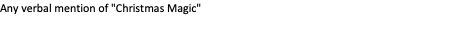 Amisunderstandingthat nearly endsthe relationshipAny verbalmention of"ChristmasMagic"DeadlovedoneFlashbackCoffeeshopThe twoleads insistthey're nottogetherA Christmasparty withclicheactivitiesSupportingrole overlyinvolved ina lead's lifeMinoritysidekickTown withChristmas-y nameBadsingingMan inFlannelBoringfact(s) abouttown no oneasked forOverhypedlocation thatis actuallysuper cheapBig citycareerwomanTheGrinchReindeerTragicbackstoryOverlyArticulateChildPublicdomainChristmasmusicSantaRandomobject thatshoehorns ina life lessonActualmagicNicheseasonalbusinessAmisunderstandingthat nearly endsthe relationshipAny verbalmention of"ChristmasMagic"DeadlovedoneFlashbackCoffeeshopThe twoleads insistthey're nottogetherA Christmasparty withclicheactivitiesSupportingrole overlyinvolved ina lead's lifeMinoritysidekickTown withChristmas-y nameBadsingingMan inFlannelBoringfact(s) abouttown no oneasked forOverhypedlocation thatis actuallysuper cheapBig citycareerwomanTheGrinchReindeerTragicbackstoryOverlyArticulateChildPublicdomainChristmasmusicSantaRandomobject thatshoehorns ina life lessonActualmagicNicheseasonalbusiness