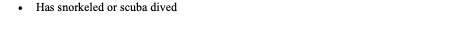 Has snorkeled or scuba dived in BC